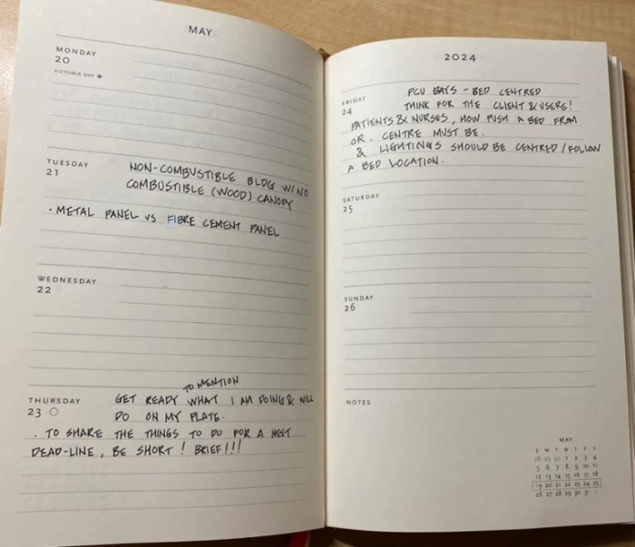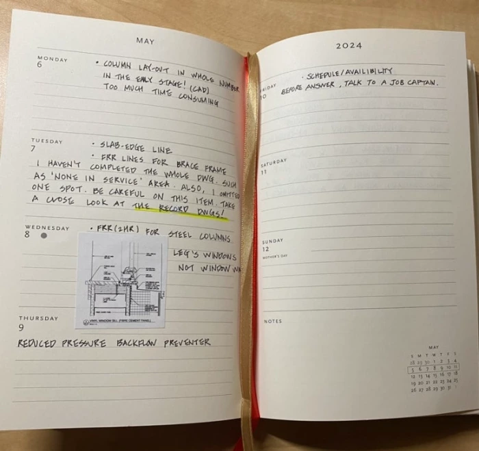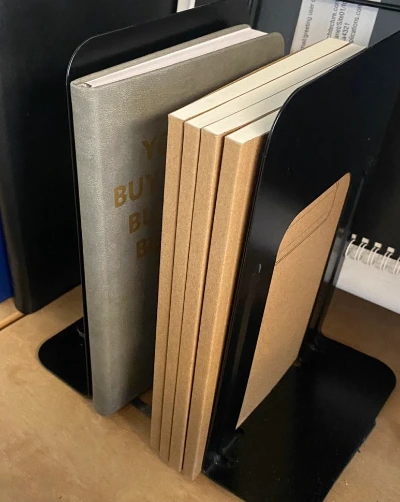 회사에서 나눠주는 노트는 위 그림처럼 뜯어 쓰는 노트패드가 일반적인데, 종이 한 장 한 장이 실수로 뜯어져 잃어버리기 쉬우므로 추천하지 않는다. 대신에 나는 오랫동안 보관할 수 있는 저널(두꺼운 공책)을 사용하는데, 다 쓴 업무 노트는 차곡차곡 쌓여 훌륭한 Architecture와 Architectural Technology 자료 출처(Reference)가 된다.