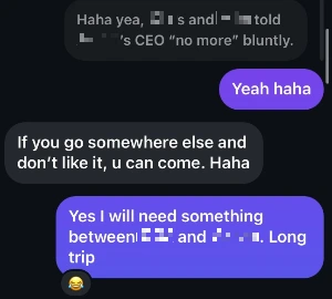 전 회사의 사장 둘이 더 이상 자신의 회사 직원들을 빼가지 말라고 했다는 것. (두 동료는 전 회사의 에이스들이었다.)