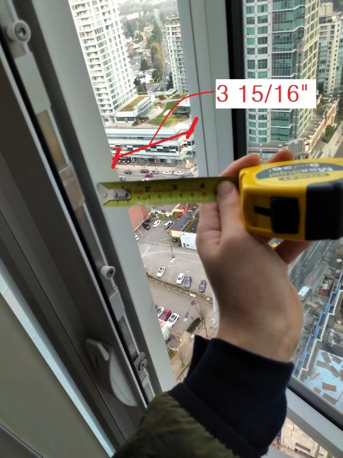 1. 창문을 열었을 때 그 간격은 3 15/16"을 넘으면 안 된다.