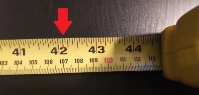 눈에 잘 뜨이도록 42 1/8"도 Tape measure에 표시를 해두었다.