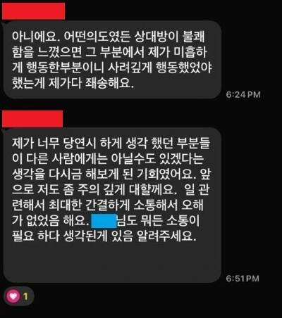 나는 위 순서대로 진행했고, 이 일이 회사라는 조직에서 벌어졌다는 특수성 때문에 위 2번과 3번 사이에 인사담당자에게 분쟁 사실을 알렸다. 그 후 마지막 단계로 그(녀)와의 관계를 끊었고, 서로를 아는 사람들 (Mutual Friends)에게 위 사실을 알림으로써 그 동료에 대해 철저한 차단을 시켰다.