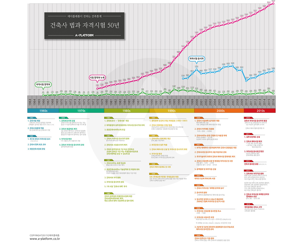 1997년 35%로 정점을 찍었던 건축사 합격률은 이후 점차 감소하더니