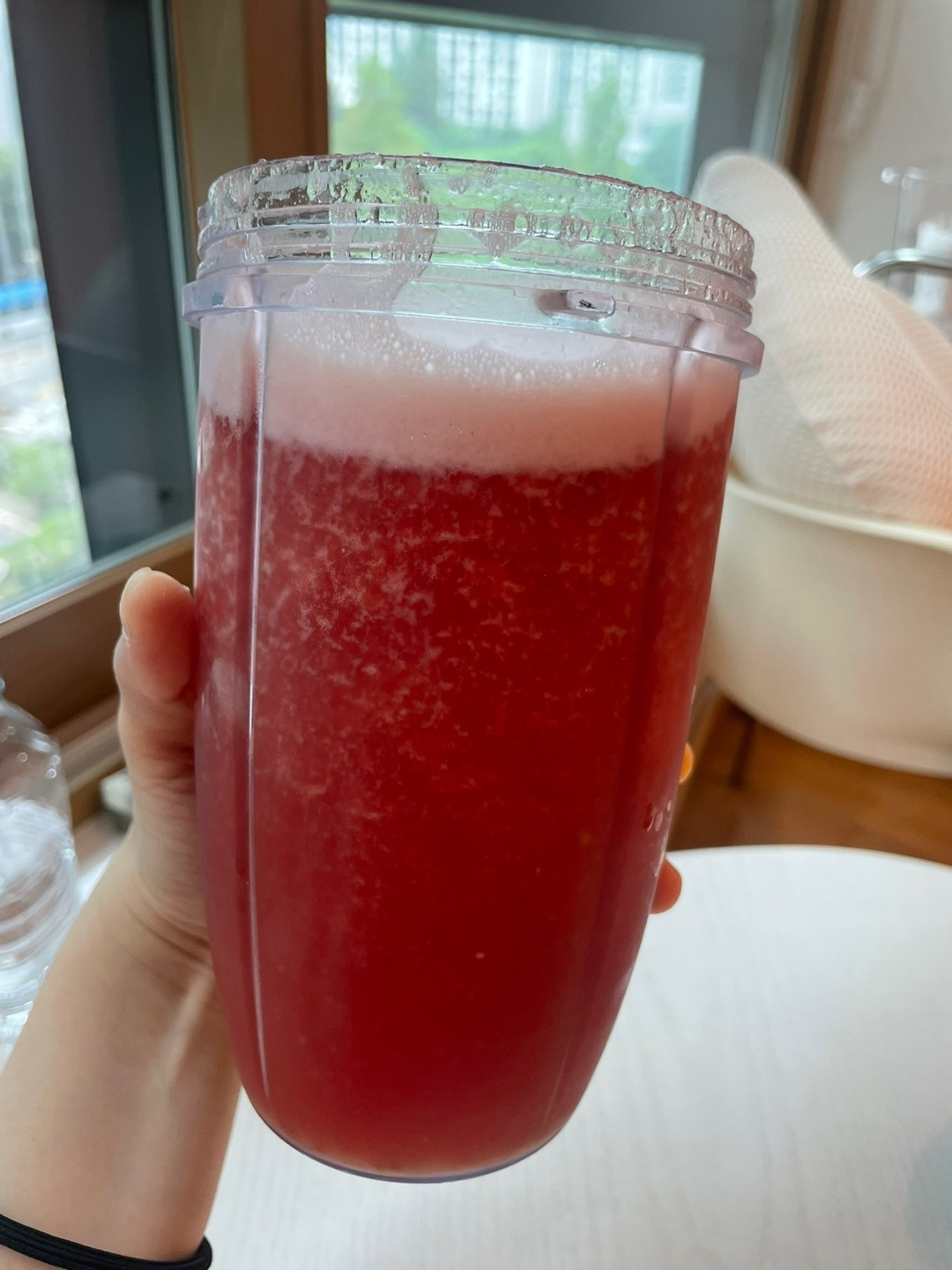묵혔던 걱정과 짜증이 한꺼번에 내려갔으면 하는 마음이 붉은 주스 한 잔에 섞인다.