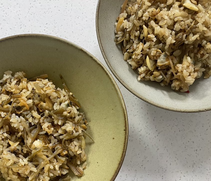 - 밥이 완성되면 미림과 후추를 넣고 헹구었던 바지락살을 투하, 5-10분 정도 뜸을 들인다.