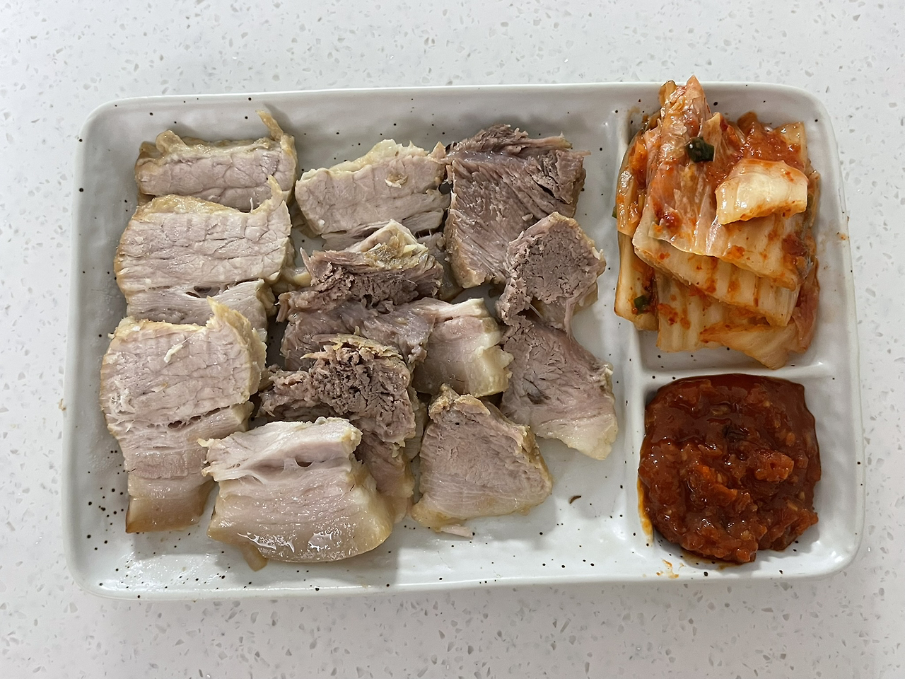그는 장을 보더니 그날부터 매일 다른 메뉴의 아침 식사를 만들기 시작했다. 의사가 이야기한 '5일 권고조치' 내내. 제육볶음 김밥을 시작으로 참치유부초밥, 알리오올리오, 수육, 김치교자와 새우튀김, 삼겹살김치말이 김밥, 육개장.