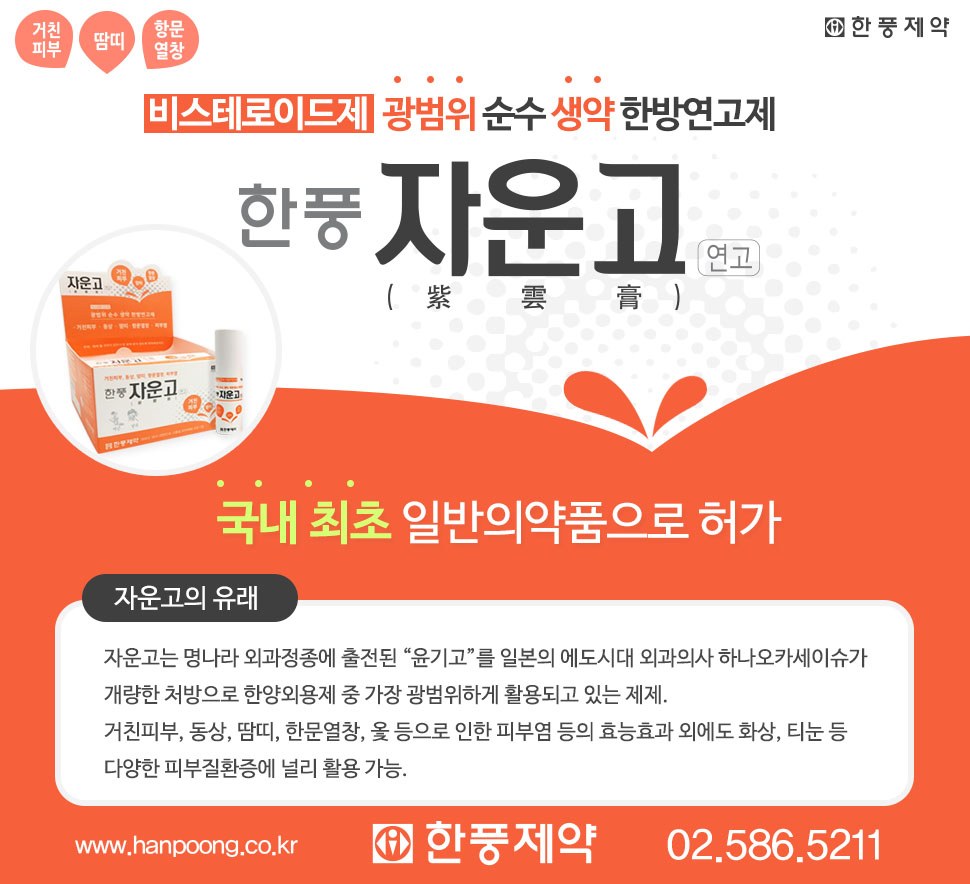 - 자근 : 지치라고도 불린다. 청열양혈약으로서 열을 내리고 혈열을 식히는 작용을 한다. 또한 투진(透疹)이라 하여 피부발진과 같은 피부병을 치료하는 것으로 알려져 있는데 "자운고"라고 하는 한방연고의 대표적인 구성약재다. 또한 약리작용으로 항염, 항진균, 항바이러스, 육아조직의 증식과 상처의 유합을 촉진시키는 것으로 알려져있다. 자근은 자줏빛을 내는 뿌리라고 해서 "紫(자줏빛 자)"를 쓰는데 자줏빛 색소이자 자근의 주성분을 "Shikonin"이라고 한다. 최근 마우스 모델을 통한 동물실험에서 shikonin이 직장 내 궤양 형성을 억제함으로서 장 조직을 유의미하게 보호한다는 연구결과도 있다.