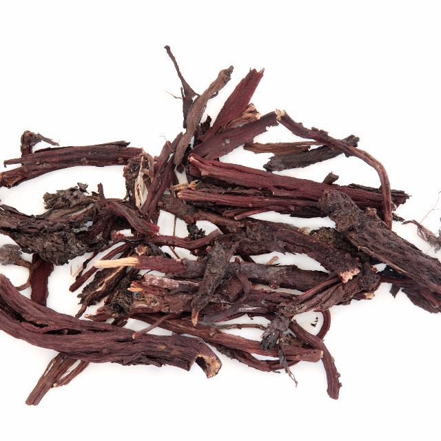 지치(Lithospermum erythrorhizon)의 뿌리(자근), "紫根"이라는 이름답게 자줏빛을 띄는 것이 특징이다.