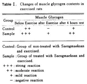 생맥산 (生脈散) 투여가 흰쥐 근육 Glycogen 함량 및 효소활성에 미치는 영향에 대한 조직화학적 연구(1990)