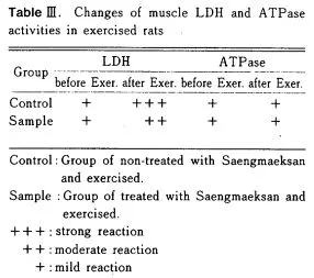 또한 해당 논문에서는 속근섬유의 LDH 활성도 측정을 통해 생맥산 투여군과 대조군을 비교도 하였는데 생맥산 투여군의 속근섬유의 LDH활성도가 저하된 것은 생맥산에 의해 산소소모율이 증가되고 젖산생성이 억제된 결과라고 추정하고 있다.