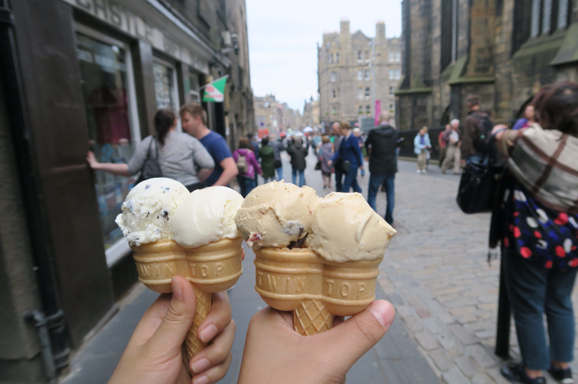 추운 날씨였지만 너무 맛있어보이는 아이스크림 가게를 봤으니 지나칠 수 없어 두 스쿱씩 얹어서 먹었다.