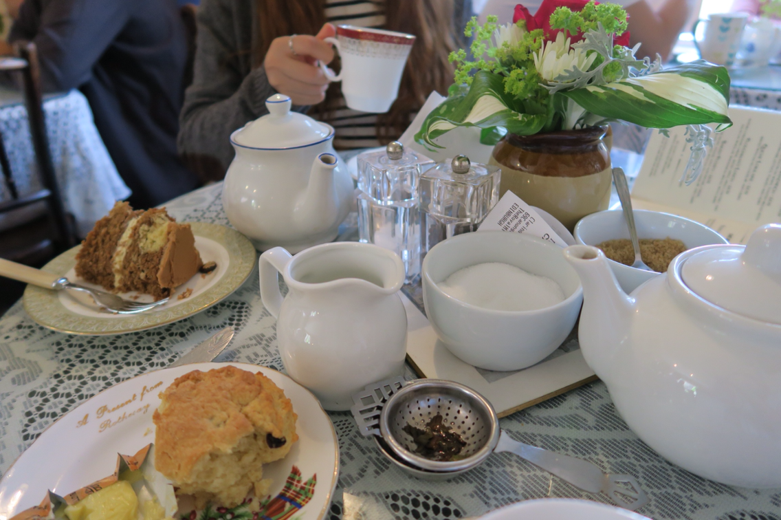 스콘에 커피케이크, 그리고 다즐링이랑 아쌈을 시켰는데, 원하는 대로 우유를 타서 즐길 수도 있었다.