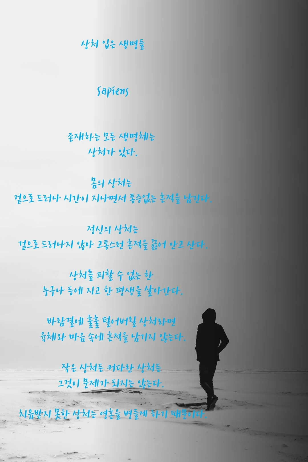 겉으로 드러나지 않아 고통스러운 흔적을 끓어 안고 산다.