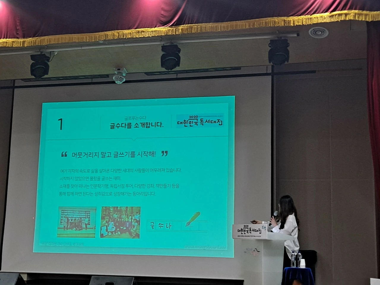 마침 대한민국 독서 대전이 ‘제주’에서 개최하면서 우리 동아리도 신청 해 소개하는 시간을 가졌다. 그에 따른 다양한 프로그램 지원을 신청함으로써 코로나로 인한 예산이 삭감되면서 진행하지 못하던 프로그램들을 외부 공간에서 진행할 수 있게 되었다.