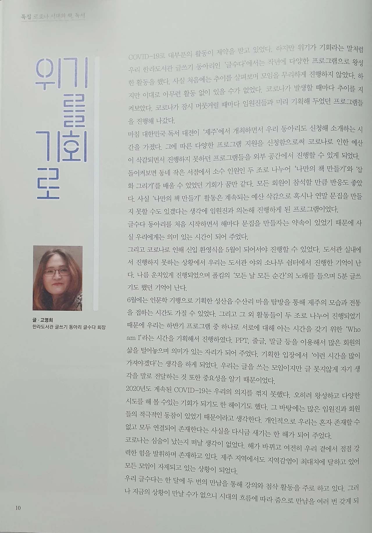 10여 년 동안 강사 활동을 했으며, 두 자녀의 성장하는 시간을 통해 내적 성장을 할 수 있었습니다. 육아에서 독립 후, 독립출판, 전자책, 시에세이집을 출간한 50대 주부입니다.