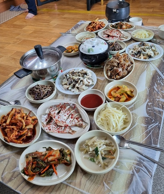 엄청 커다란 상에 제철 해물을 재료로 한 건강 밥상을 상다리가 부러지게 차려 주신다.