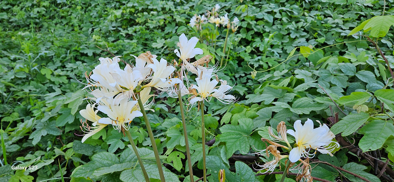 올여름 장맛비가 너무 오래 내렸는지 이날 아침 시간에 본 하얀 상사화는 제대로 개화가 되어있지 않고 피어난 자태도 썩 곱지가 않았다.