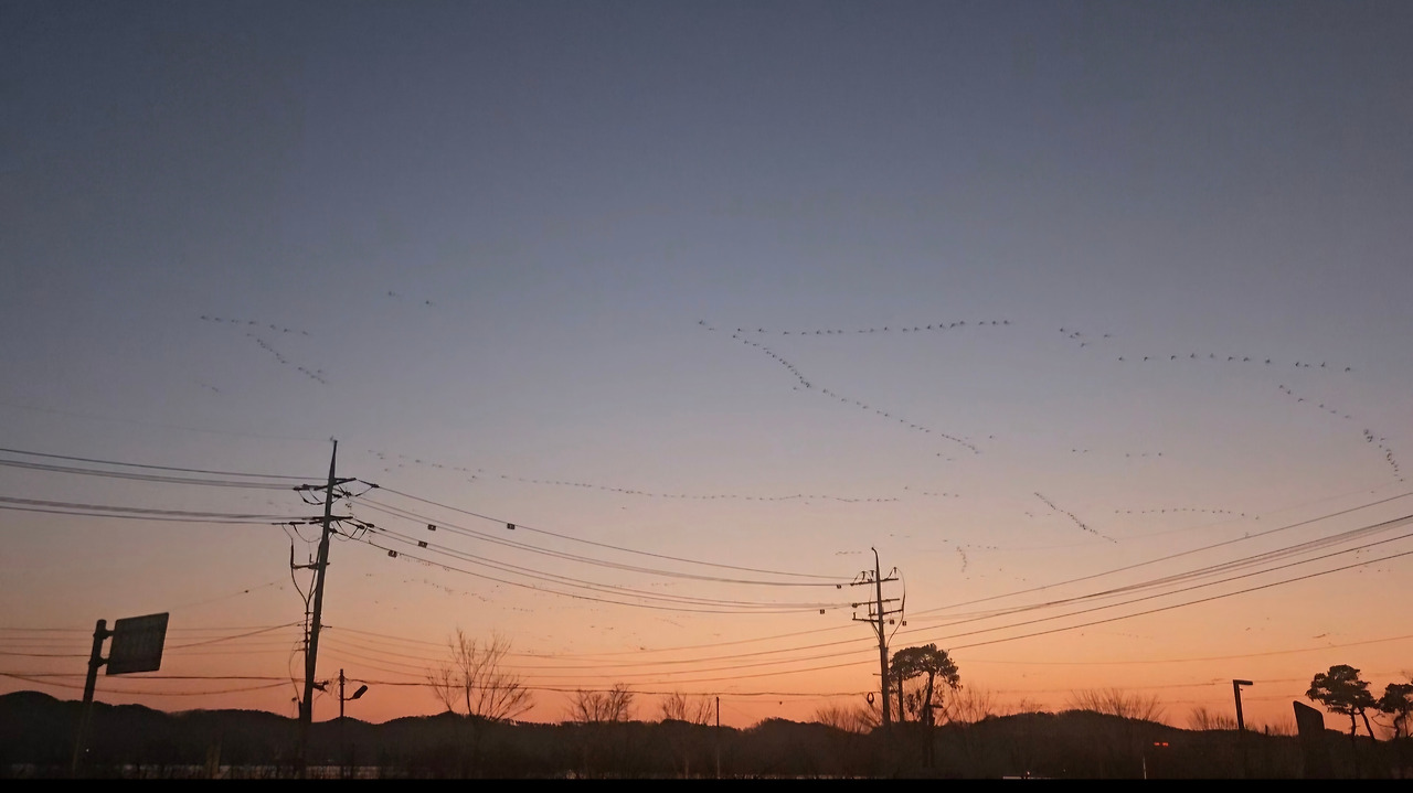 그렇게 한 시간가량 힘든 아침을 보내고 나면, 7시가 된다. 추운 날씨가 계속되는 이 무렵, 같은 시간이 되면 어김없이 기숙사 앞에 펼쳐진 예당호에서는 (어림 잡아) 수 만 마리의 철새가 하늘을 뒤덮는다. 마치, 출발선에서 쏘아대는 총소리처럼 그들은 일제히 어떤 신호에 맞춰 힘차게 수면을 발차기한다. 그들의 힘찬 에너지는 물안개가 자욱이 핀 예당호의 안개를 순간 흩어 놓을 정도였다. 그리고 저마다 다른 소리로 서로를 불러가며 진형을 갖춘다. 진형을 갖춘 한 무리의 철새들은 공기의 저항을 가장 많이 받는 맨 앞 대장에게 응원의 소리를 건네며 하늘을 가로지른다. 그리고 순식간에 산 너머로 사라진다.