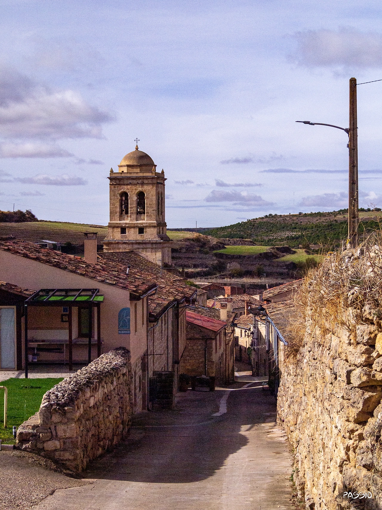 온타나스 표지판이 보이기 시작했다. 하지만 마을이 보이지 않았다. 메세타 평원이 은근히 해발고도가 높은 편이라 저 아래에 있는 마을이 보이지 않았던 것이다. 그러다가 갑자기 내리막길이 펼쳐지고 그 아래에 작은 마을 온타나스가 보이기 시작했다. 예상할 수 없이 갑자기 확 내리막길이 펼쳐지기에 신기함에 입을 다물 수가 없었다. 환상적이었다. 갑자기 마을이 신비롭게 보이기 시작했다. 주변이 넓은 평원에 둘러 싸여 있어 더욱 그렇게 느껴졌던 것 같다. 1시가 조금 넘은 시각, 열려 있다고 믿은 알베르게 도착했다.