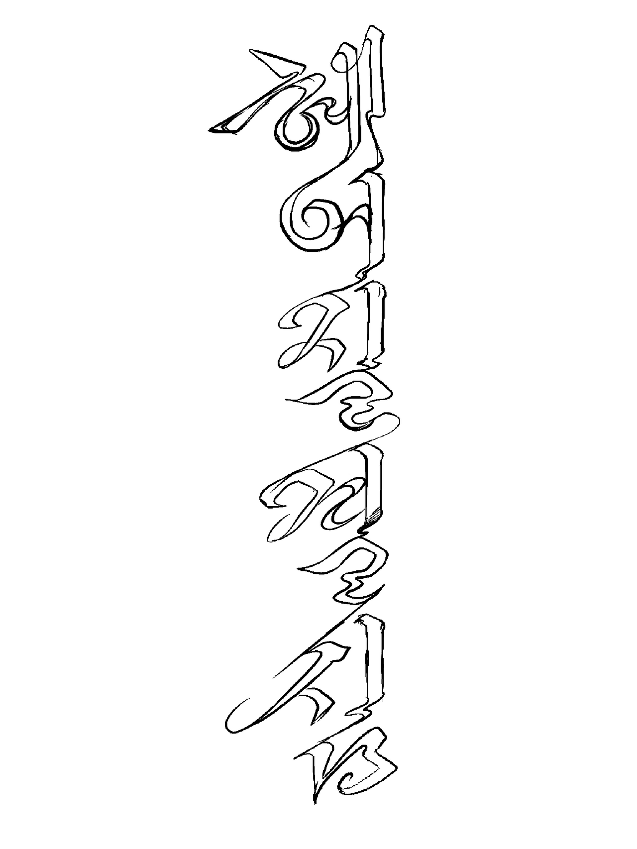 이번 작업은 흘림체의 영향을 받았습니다. 그래서 처음에는 흘림체 특유의 받침 ‘ㅁ’ 형태를 차용하려 했습니다. 하지만 앞서 말씀드렸듯, 이번 작업의 핵심은 ‘부리’의 특성에 있습니다. 단순히 흘림체의 형태를 재현하기보다는, 다른 글자들에서 드러나는 부리의 힘과 방향성을 담고 싶었습니다. 이를 위해 ‘ㄹ’과 ‘ㅎ’, '자음의 부리'등을 참고하여 ‘ㅁ’의 구조를 새롭게 스케치했습니다. 다른 글자들과의 형태적 통일성과 인상적인 조화를 유지할 수 있도록 세밀하게 수정했습니다.