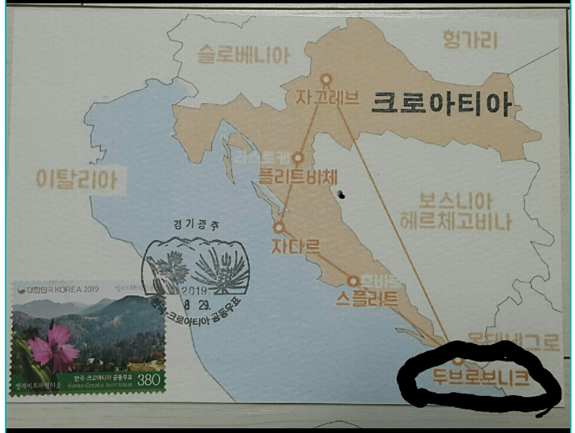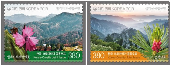 예전에 한국-크로아티아 공동우표가 발행된 바 있다. (2019.8.29.) 디자인에 두 나라의 대표적인 국립공원과 그곳의 자생 식물이 담겨 있던..