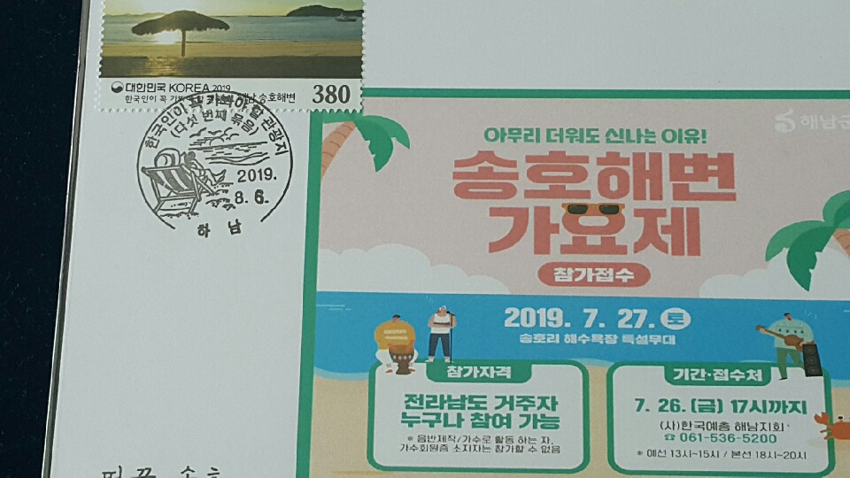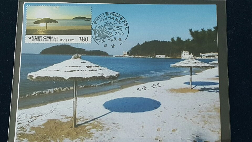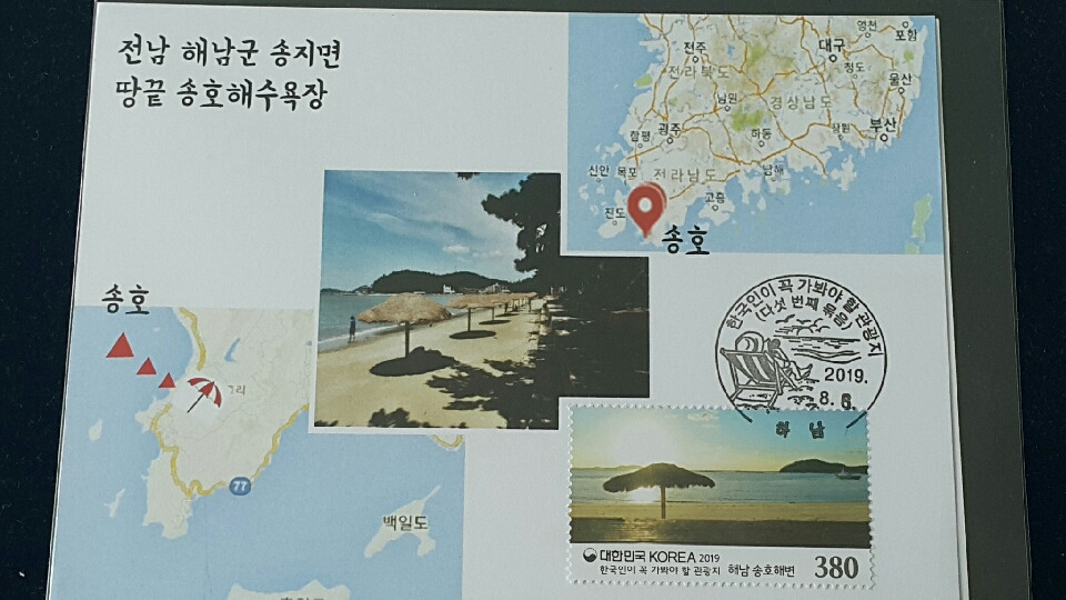전에 남도 끝자락 해남 송호해변 우표가 나왔었었다.