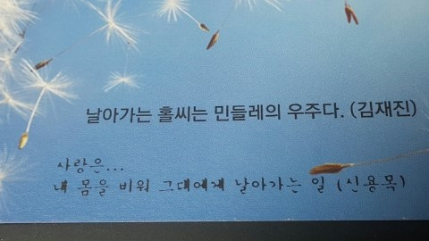 아무래도 나는 죽었다 깨나도 "날아가는 홀씨는 민들레의 우주다." 같은 표현은 안나올 듯ㅠ