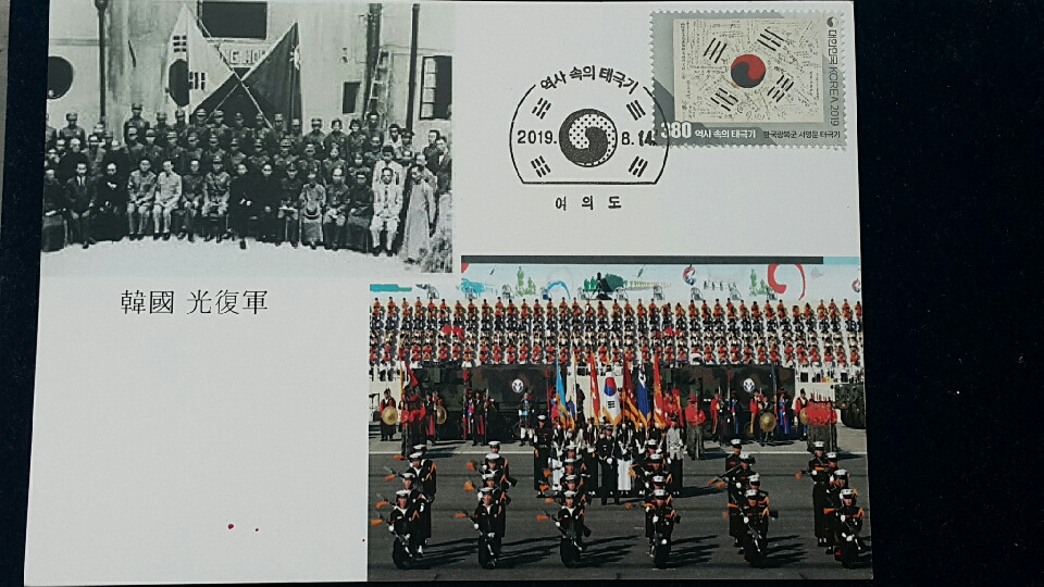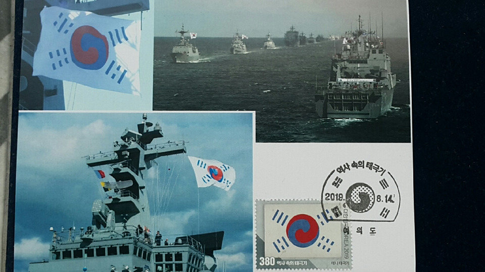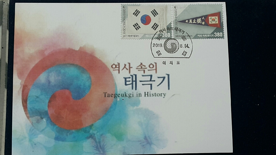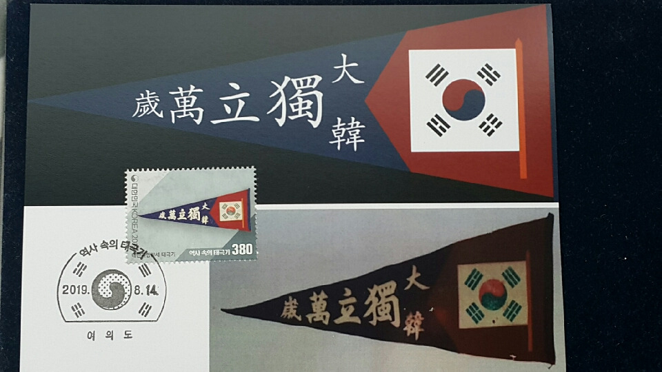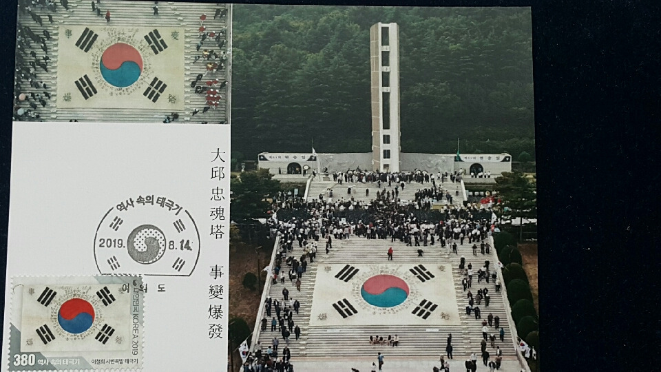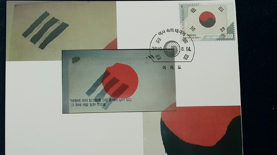 이와 같이 현재모양대로 정착되기 전에 초기에는 태극기의 괘모양, 괘 배열, 태극 모양 등에 따라 여러 버젼이 있었다는 내용이고, 3.1만세운동 100주년을 맞았던 지난 2019년에 16종의 태극기 우표가 발행된 바 있었다. 이른바 '역사 속의 태극기' 시리즈 이름하에..