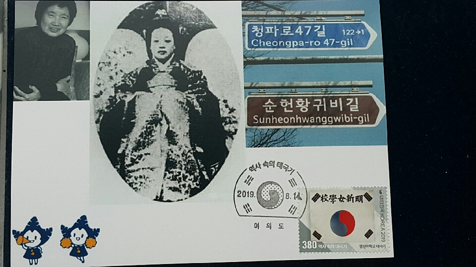 설립자라 할수 있는 순헌황귀비 엄씨가 학교에하사하신 태극기. 도로이름에 그분의 이름을 따서 명예도로명이 주어지기도.