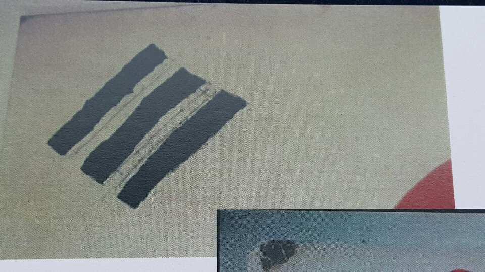 파란부분의 상대적 거친 면을 보아 일장기 위에 비밀리에 덧칠한 것 !