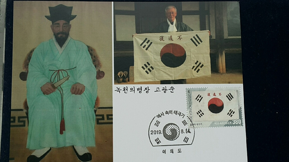 조선시대로 거슬러 가서 임진왜란 금산 전투에서 장렬히 순국한 의병장 고경명이란 분이 계시는데... 그 피는 어디안가는지 그분의 12대손이 바로 고광순 의병장 (왼쪽사진). 태극기를 드신 분은 의병장 분의 손자