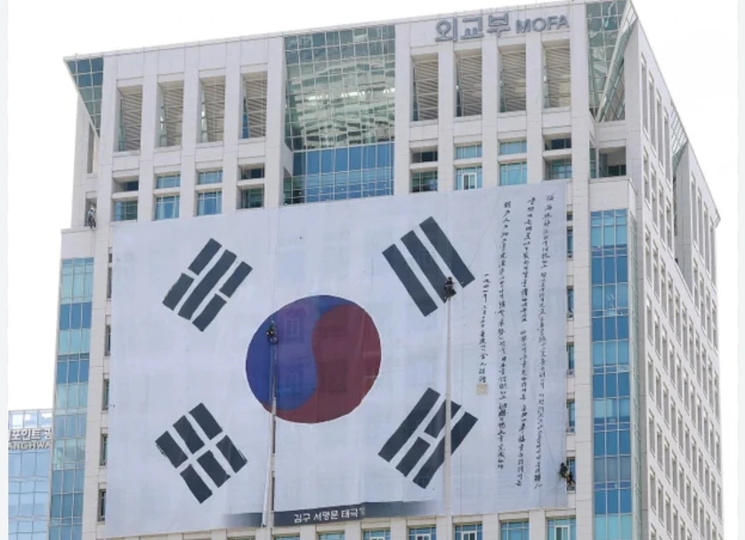 외교부 건물 밖에 초대형 버젼으로 만들어져 걸리다.