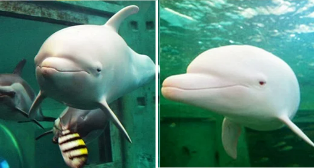 그리고 이 흰돌고래는 슬프거나, 두려우면 아래 사진처럼 핑크색으로 변한단다