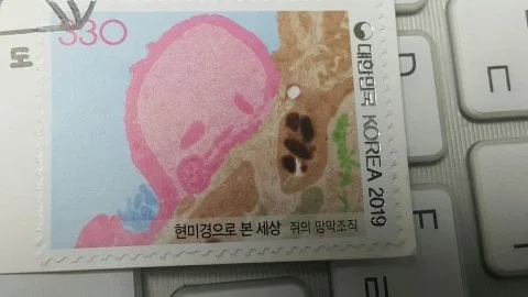 그러던 지난 2019년에 핑크돌고래 아니 쥐의 망막사진을 주제로 한 330원권 우표가 발행되었었다. '현미경으로 본 세상' 이란 테마로.