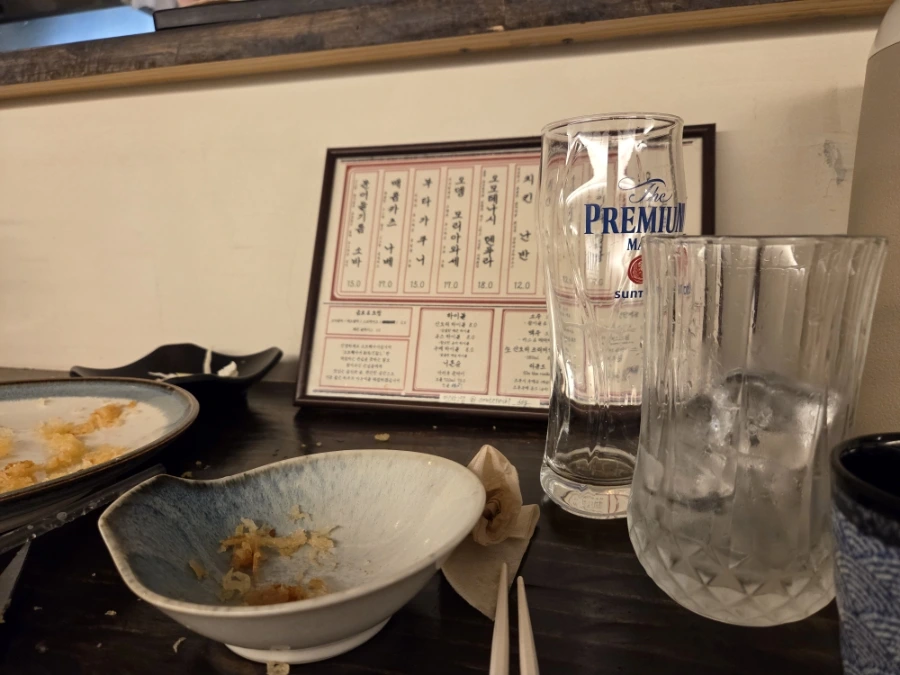 그 흔적조차 조급해 보이는 유부남이 떠난 술자리.