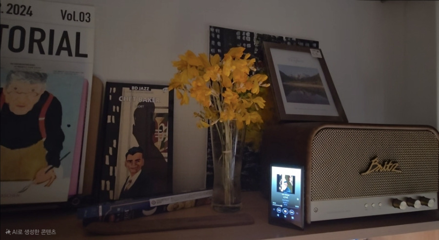 그러고 나서 스피커를 통해 음악을 재생시키니까 분위기가 제법 괜찮아요.
