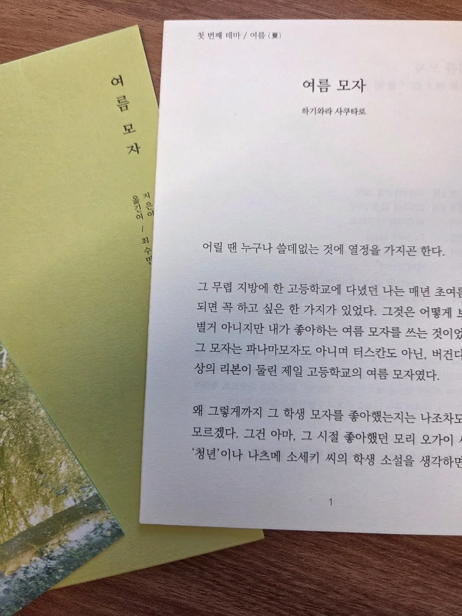 제가 <하기와라 사쿠타로> 작가의 <여름 모자>를 만난 것은 바로 지금 여기니까요.