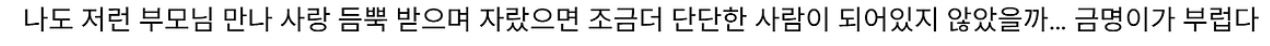 드라마 폭싹 속았수다에 보면, 주인공 금명이가 남자친구(영범)와 헤어지고, 다친 마음으로 괴로워 하다 제주도로 깜짝 방문을 한다. 엄마 아빠는 헤어짐에 아픈 딸을 위로하려고, 온갖 사랑을 퍼부어 준다. 그 영상에 달린 한 댓글이 눈에 뛰었다.