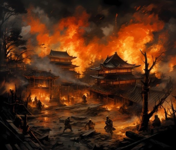 허물어지는 경복궁을 바라보며 호색도 흐르는 눈물을 감출 수가 없었다. 마침 부슬부슬 비가 내리고 있었지만 화마(火魔)로 무섭게 타오르는 붉은 경복궁을 그저 바라만 볼 수 밖에 없었다... 최장군 호색의 눈물이 빗물이 되어 흘러도 소용이 없었다