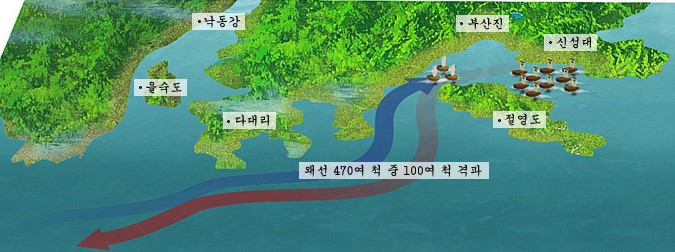 " 장군~~~ 서평포(西平浦), 다대포(多大浦), 절영도(絶影島)를 지나며 이미 왜선 24척을 격파했사옵니다 장군~~~"