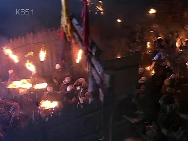 “ 그때 목책밖에서는 일체형으로 만든 성곽 목책 문이 닫히며 우렁찬 함성과 함께 화살이 공중에서 퍼붓고 있었다