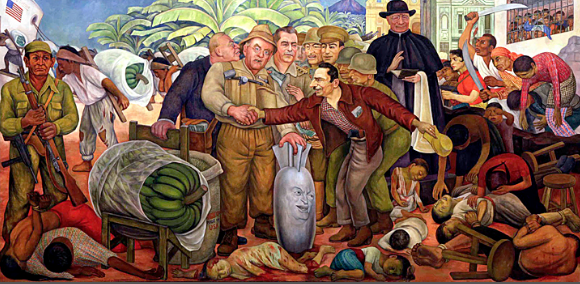 1928년 12월 6일 콜롬비아에서 바나나 농장의 농부들은 처우 개선을 요구하며 한 달간 파업했다. 파업이 길어지자 미국 관리와 다국적 기업들이 콜롬비아 정부를 상대로 파업 문제를 해결할 것을 요구했고, 콜롬비아 정부는 군대를 동원해서 농부들을 학살했다. 정부는 죽은 사람의 숫자가 50명 정도라고 발표했지만, 자유주의 언론은 약 2000~3000명이 사망했다고 보도했다. 어느 쪽이건 간에, 국가가 자국민을 상대로, 학살을 자행했다는 사실은 변하지 않는다. 이때 국가는 가난한 농부가 아니라, 돈이 많은 자본가들의 편을 들었다. (심지어 자국민도 아닌, 강대국의 기업을 위해서!)