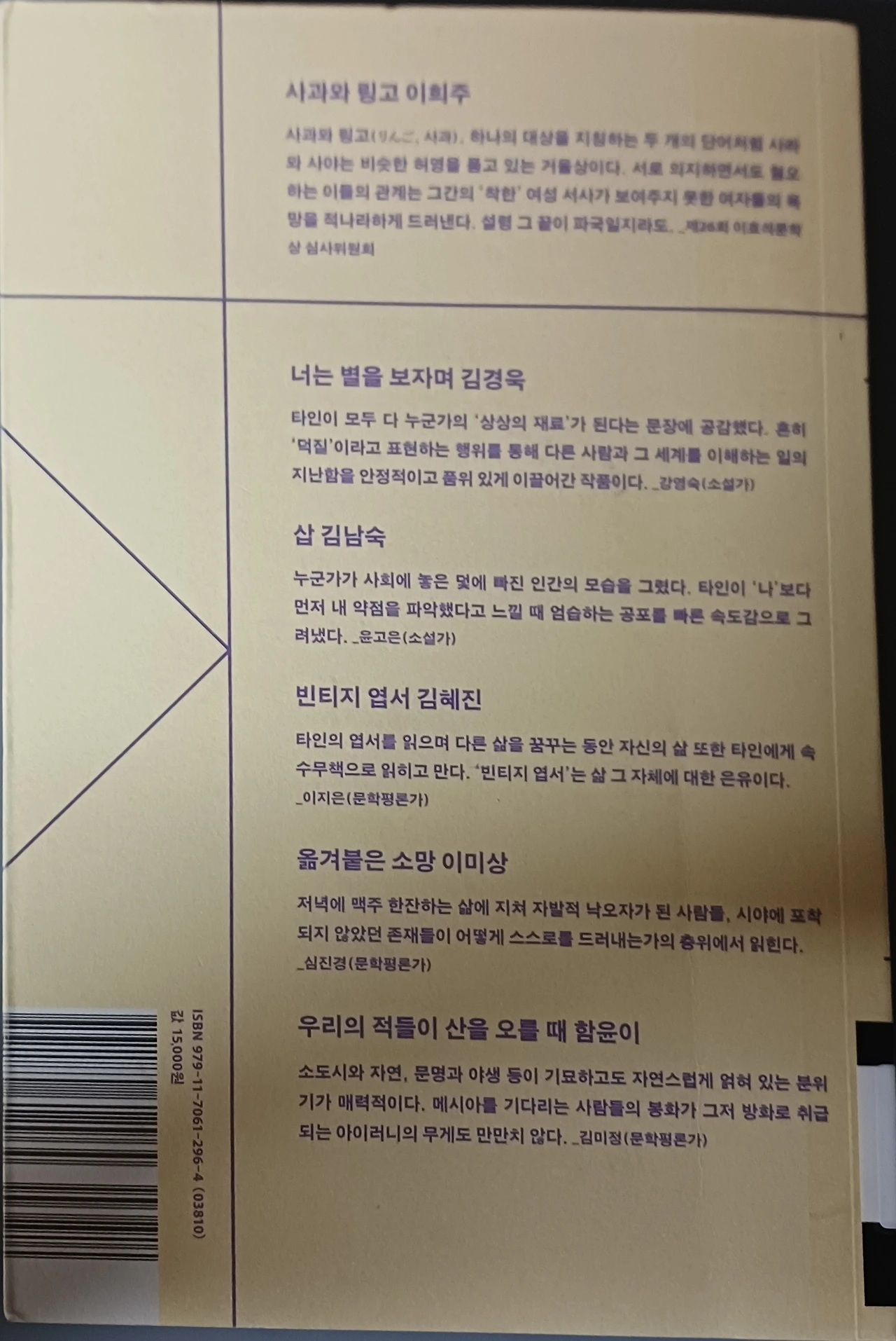 무엇보다 각 작품이 특정한 주제를 탐구하는 글들이라 쉽게 젖어드는 동질성의 감상도 남았지만 독특하고 살짝 난해한 깊이도 느끼는 독서였다.