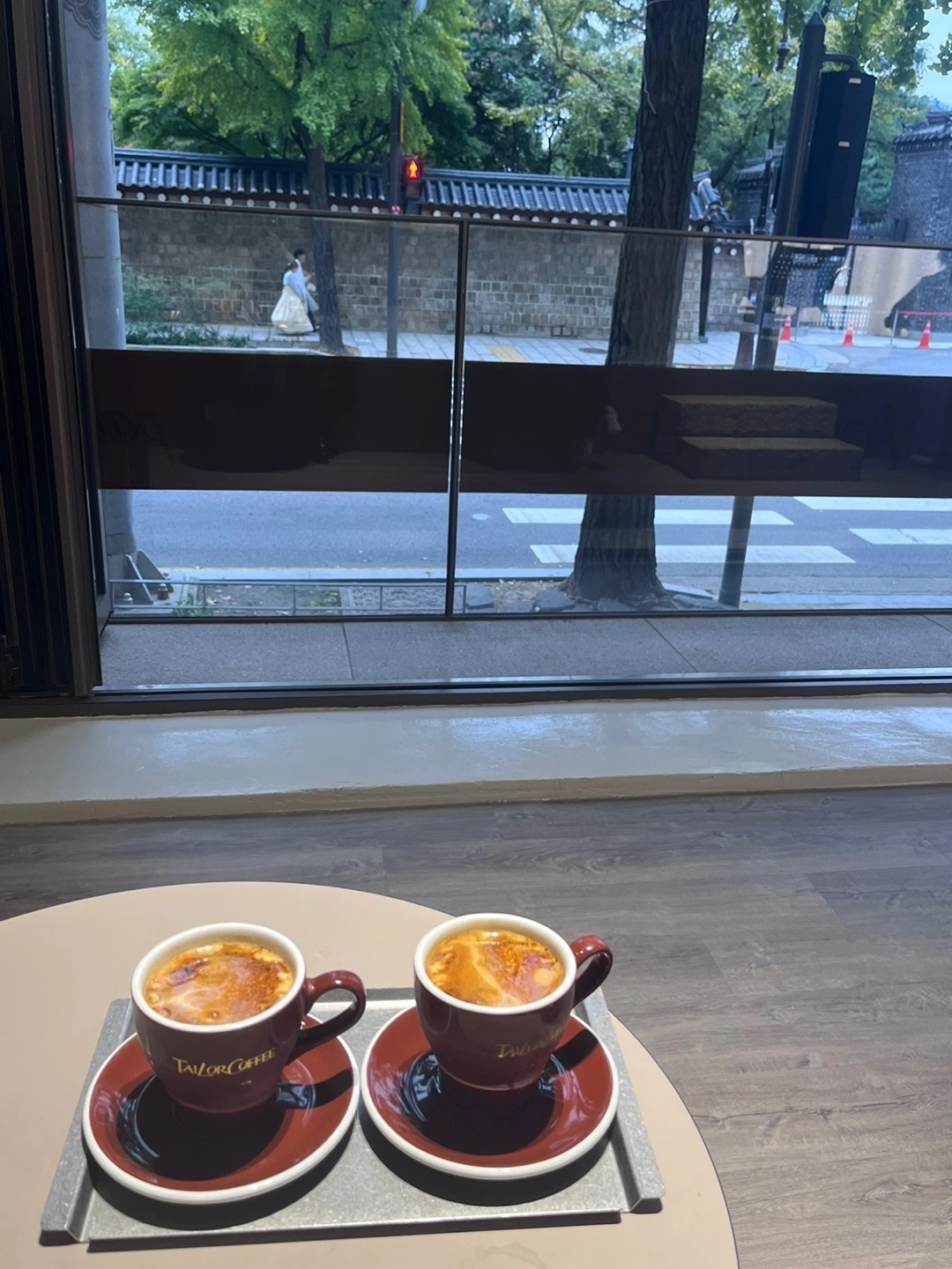 퇴근이 늦을 막내딸은 전시회장으로 직접 온다니 큰딸과 우선 수다 한판을 즐기며 경복궁의 담장이 보이는 카페에서 신났다.