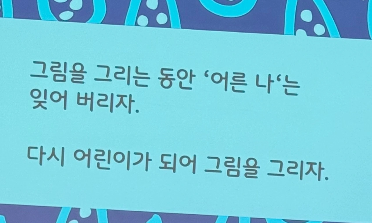 특별수업이라 2회 차 지도를 위해 오신 선생님은 수업 전 자신의 소개를 하는데 울컥하고 감동스러워서 역시 예술의 승화는 삶에서 커다란 부분을 차지한다는 생각을 하게 되었다.