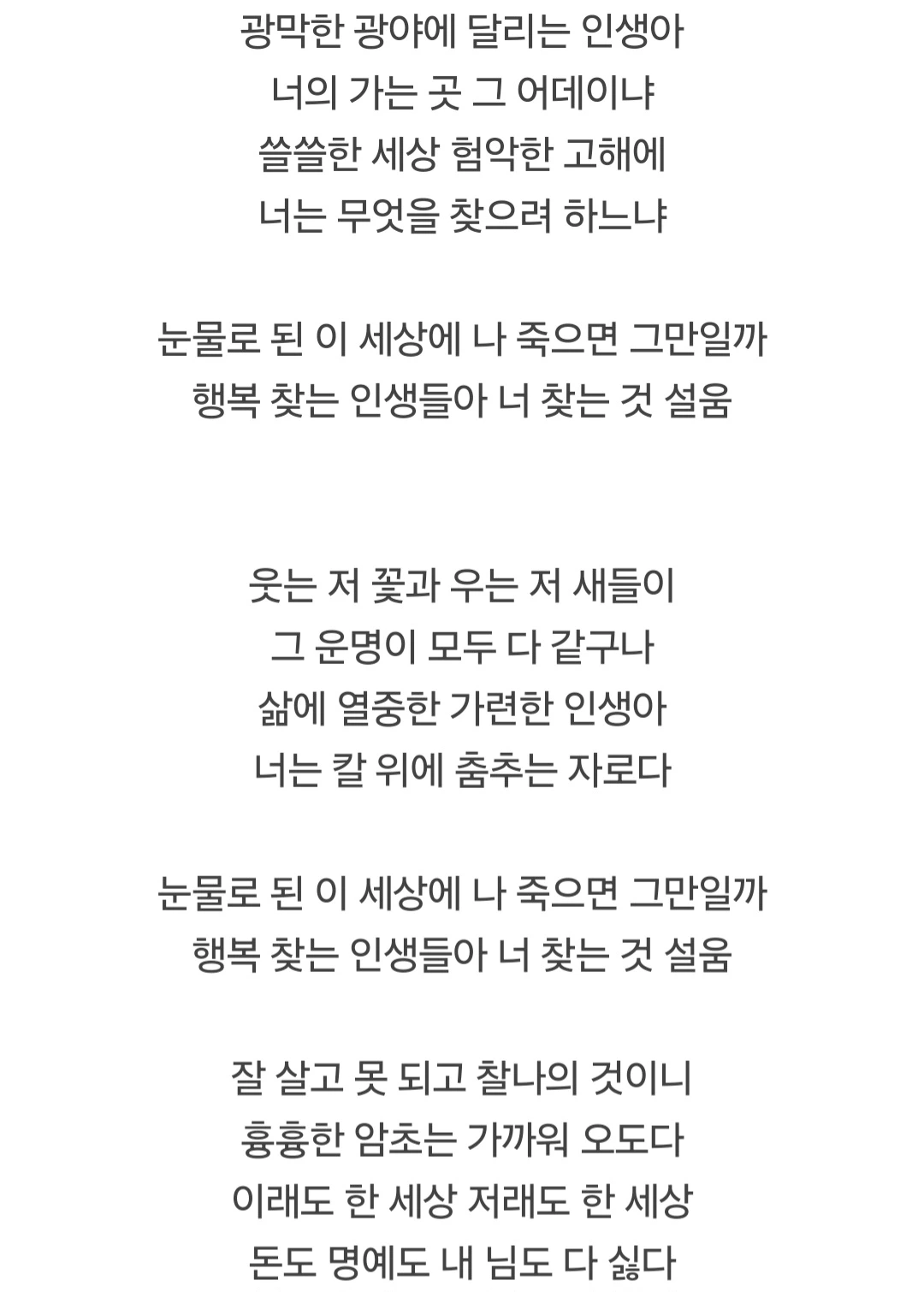 실상 젊은 날 막걸리 한잔 걸치고 부르던 가사는 마지막 부분을 개사해서 부르곤 했다.