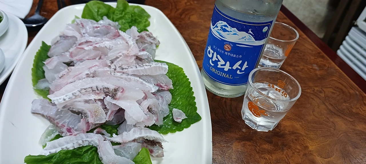 도착해서 저녁은 원주민 맛집인 횟집에서 한라산과 정취를 맘껏 누리며 엄마 배낭도 의자 한편에 두고 엄마와의 추억을 계속 떠올리며 수다는 넘쳐났다.