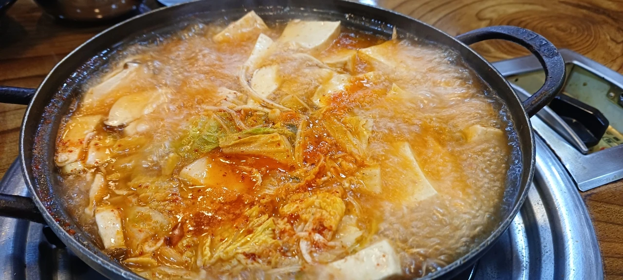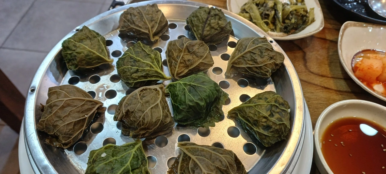 수제 두부전골도 훌륭한데 곰취로 피를 감싼