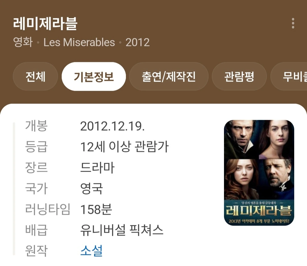 2012년 12월에 개봉된 영화이고 온 가족이 성탄절 나들이 겸 보아서 감흥이 엄청 오래 남았던 기억이다.