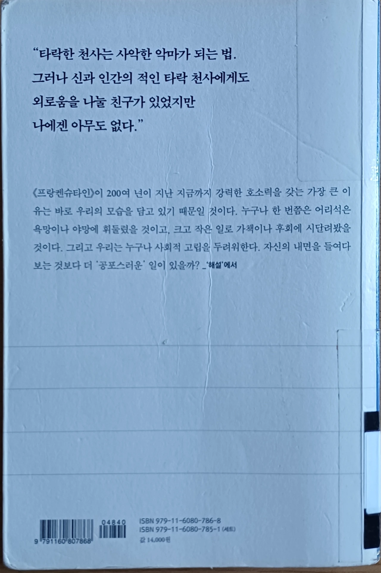 무한한 호기심과 열정으로 괴물을 무에서 유로 창조해 두고는 책임감 없이 도망간 빅터의 도발적 행동 하나로 비극이 연속적으로 생겨나고 정신없는 살인현장들의 묘사가 끔찍했다.
