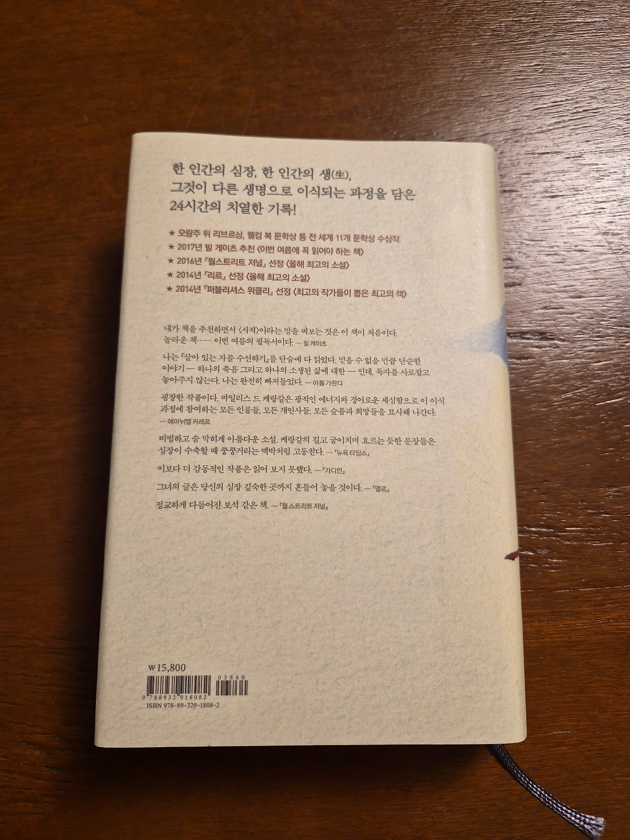 장기 이식의 제반과정이 보이는데 기증자의 가족에게 '장기 기증'을 권유하고 결정하는 과정에서 발생하는 윤리적 딜레마를 던져주었다. 연명치료 포기와 장기 기증을 늘 염두에 두면서 이번 소설이 주는 리얼리티가 크게 와닿았다.